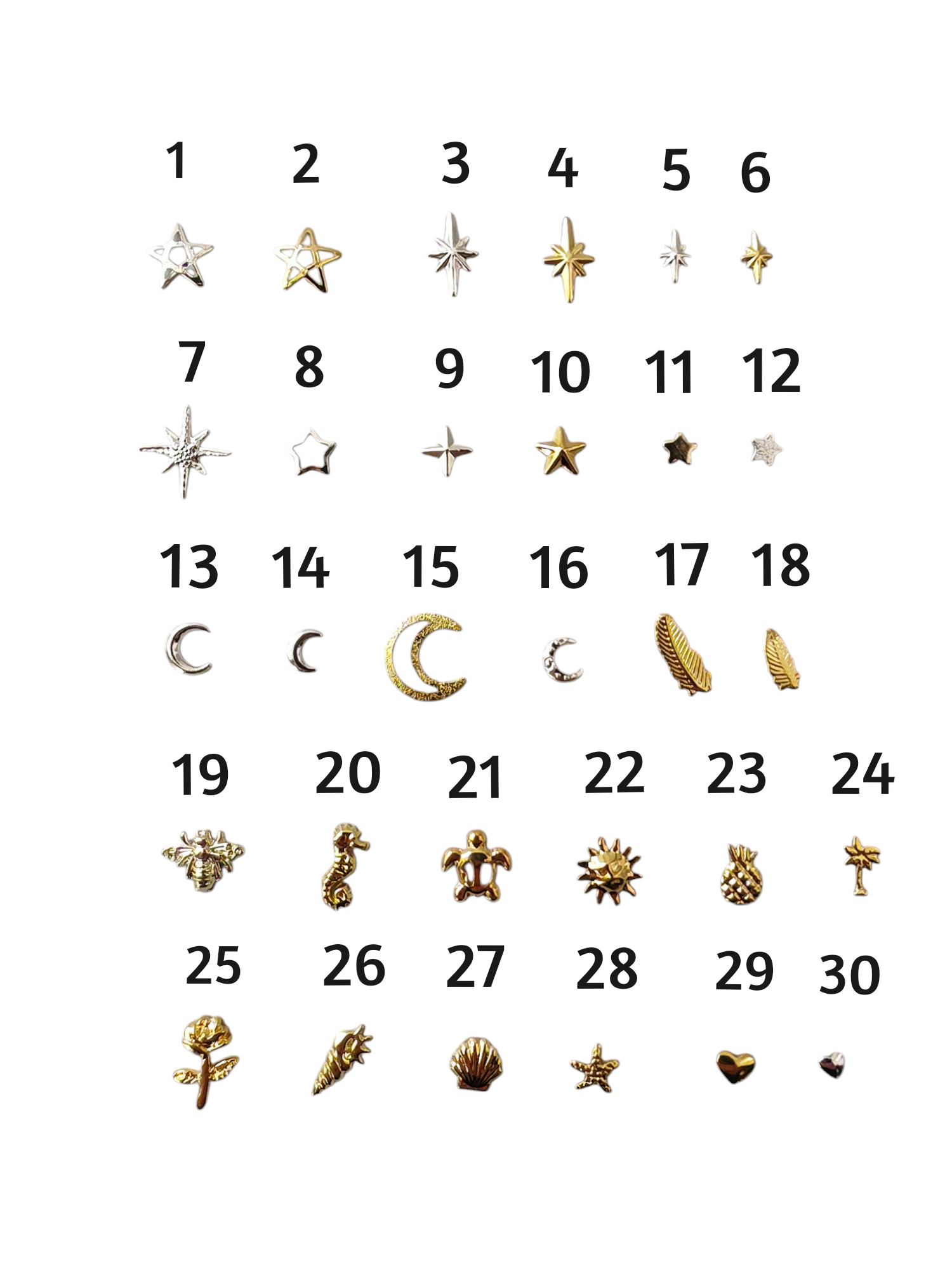 Plusieurs inclusions peuvent être possibles : fleurs séchées, initiales, symboles, paillettes, feuilles argentées ou dorées.