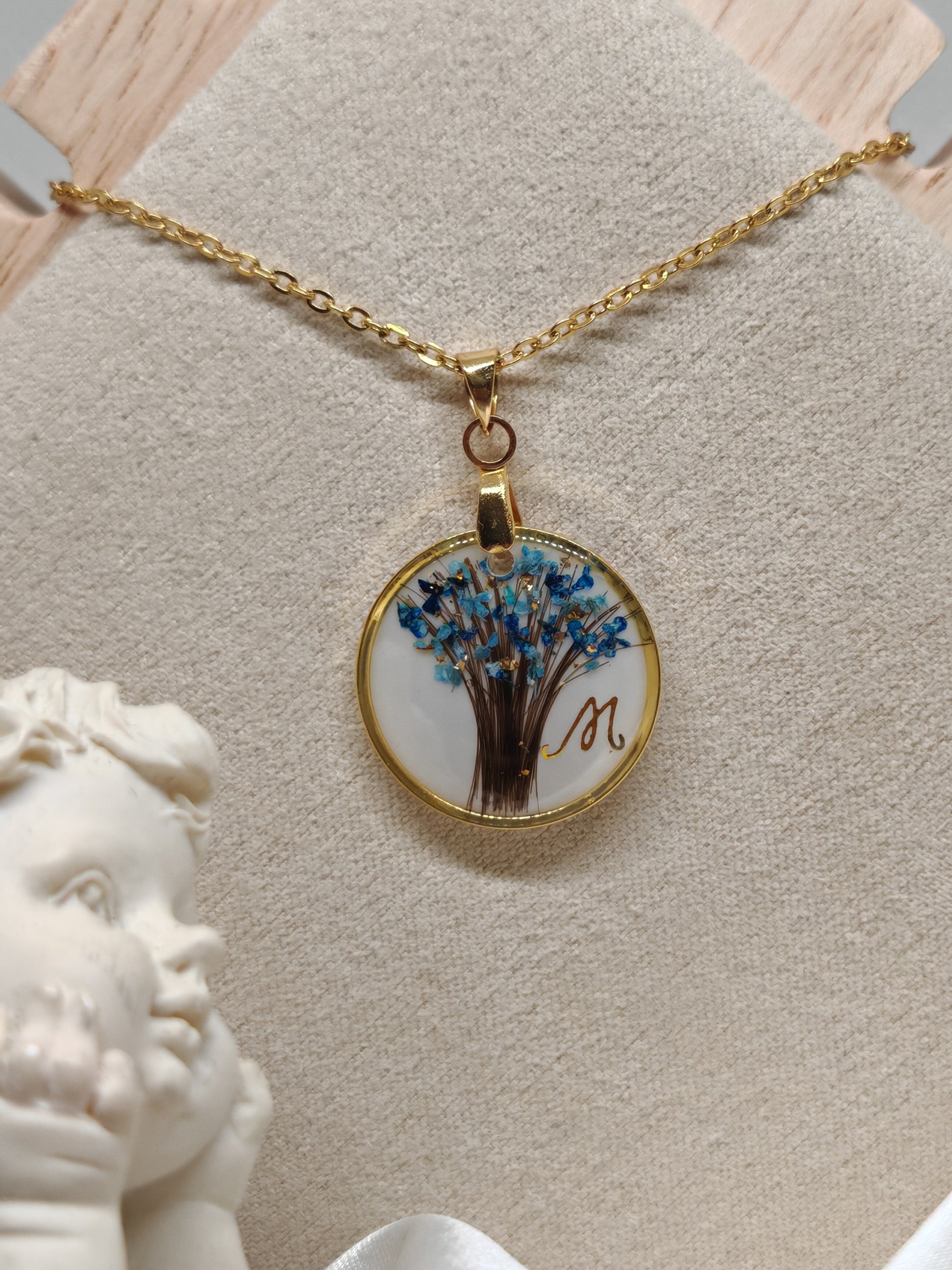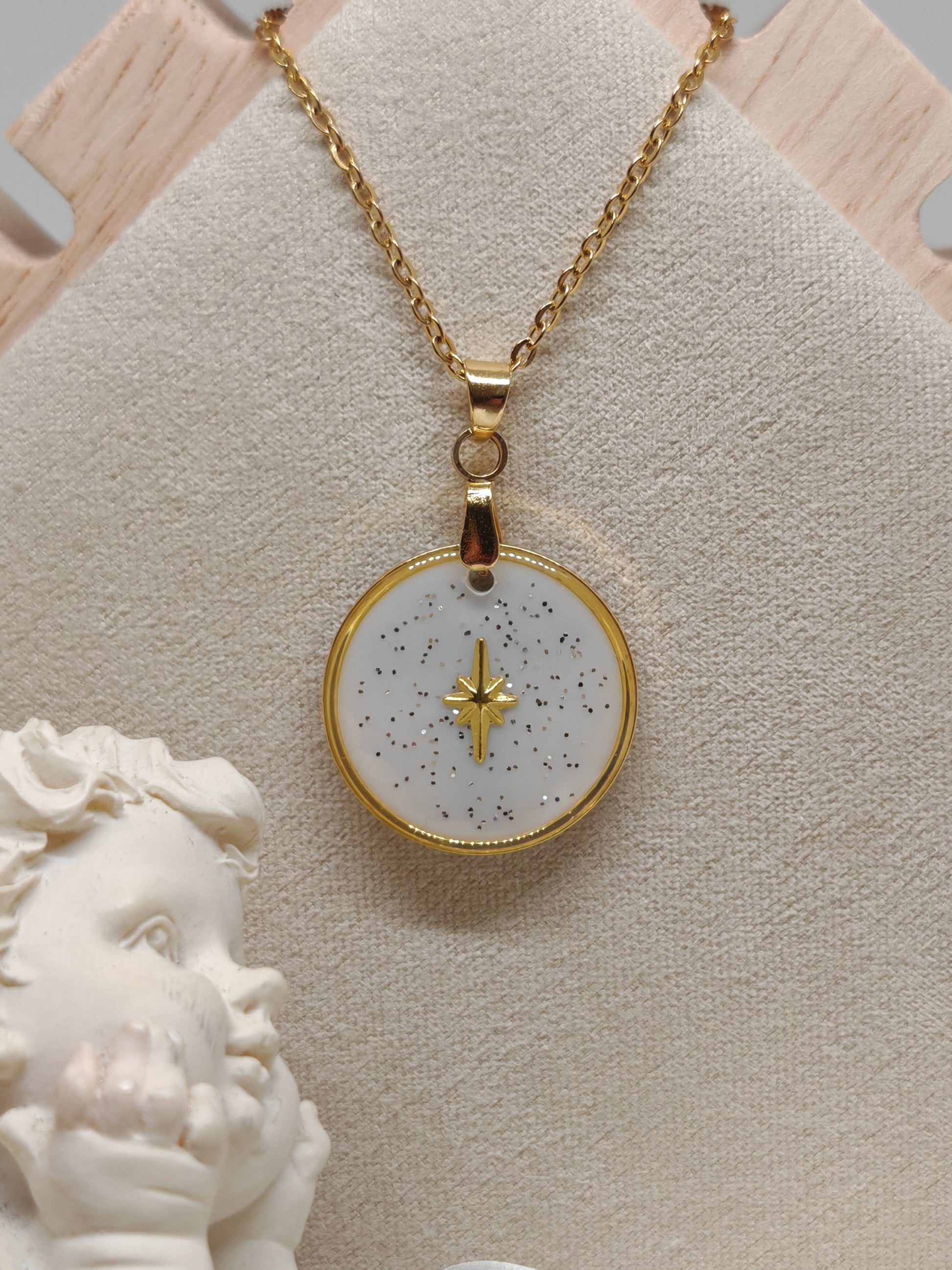 Le bijou arbre étoilée recto verso et confectionner de mes mains en acier inoxydable et résine UV.