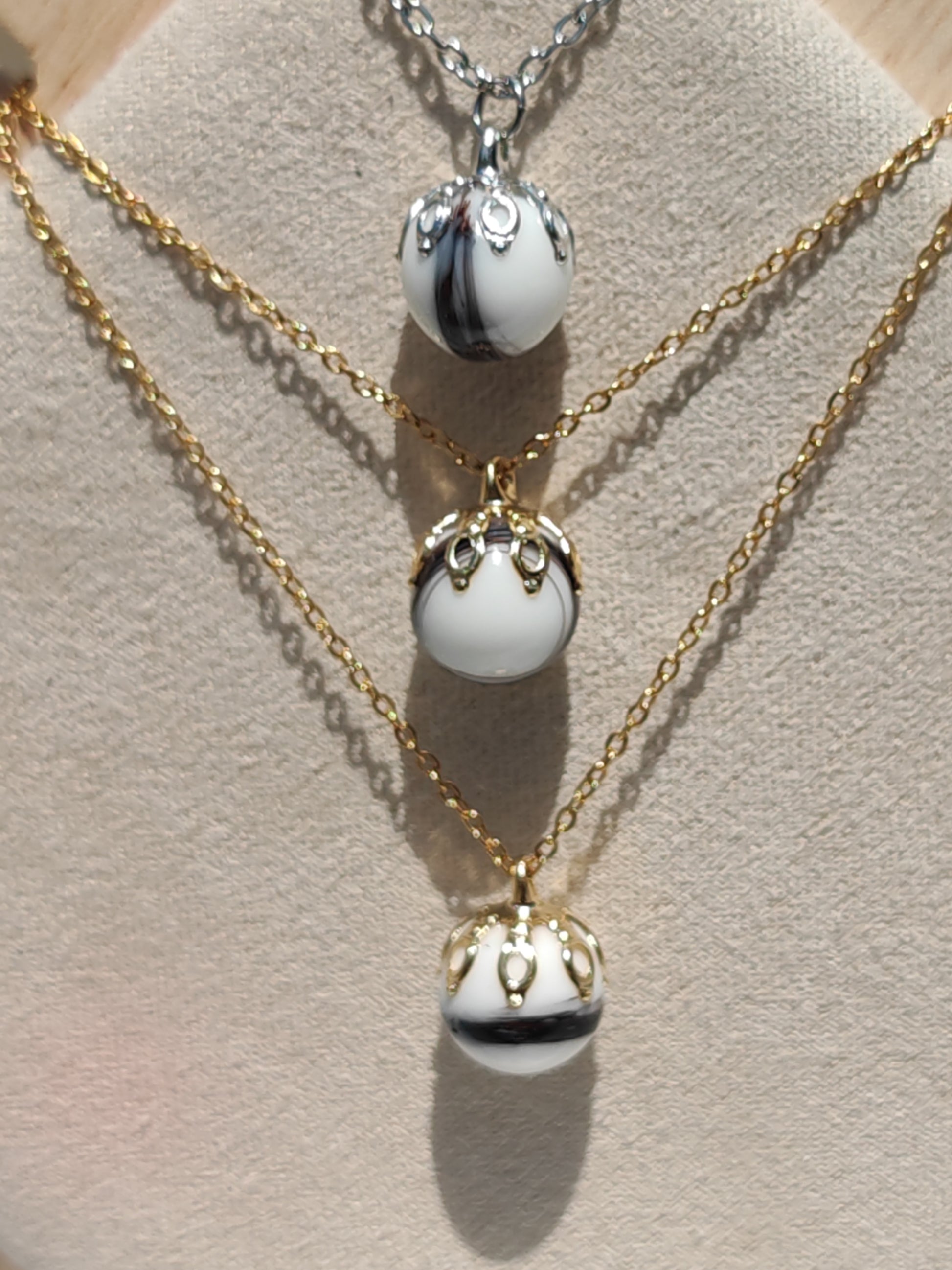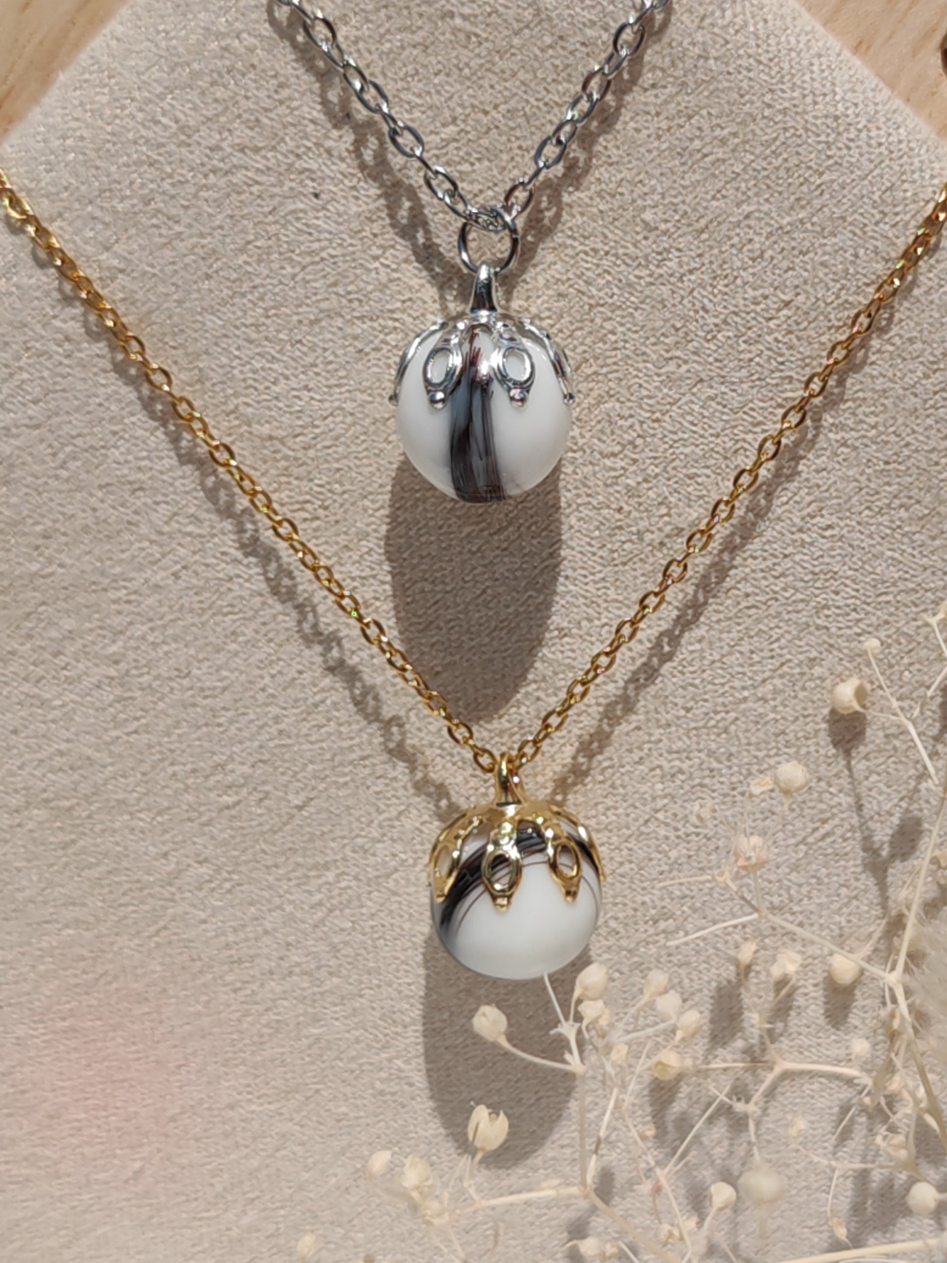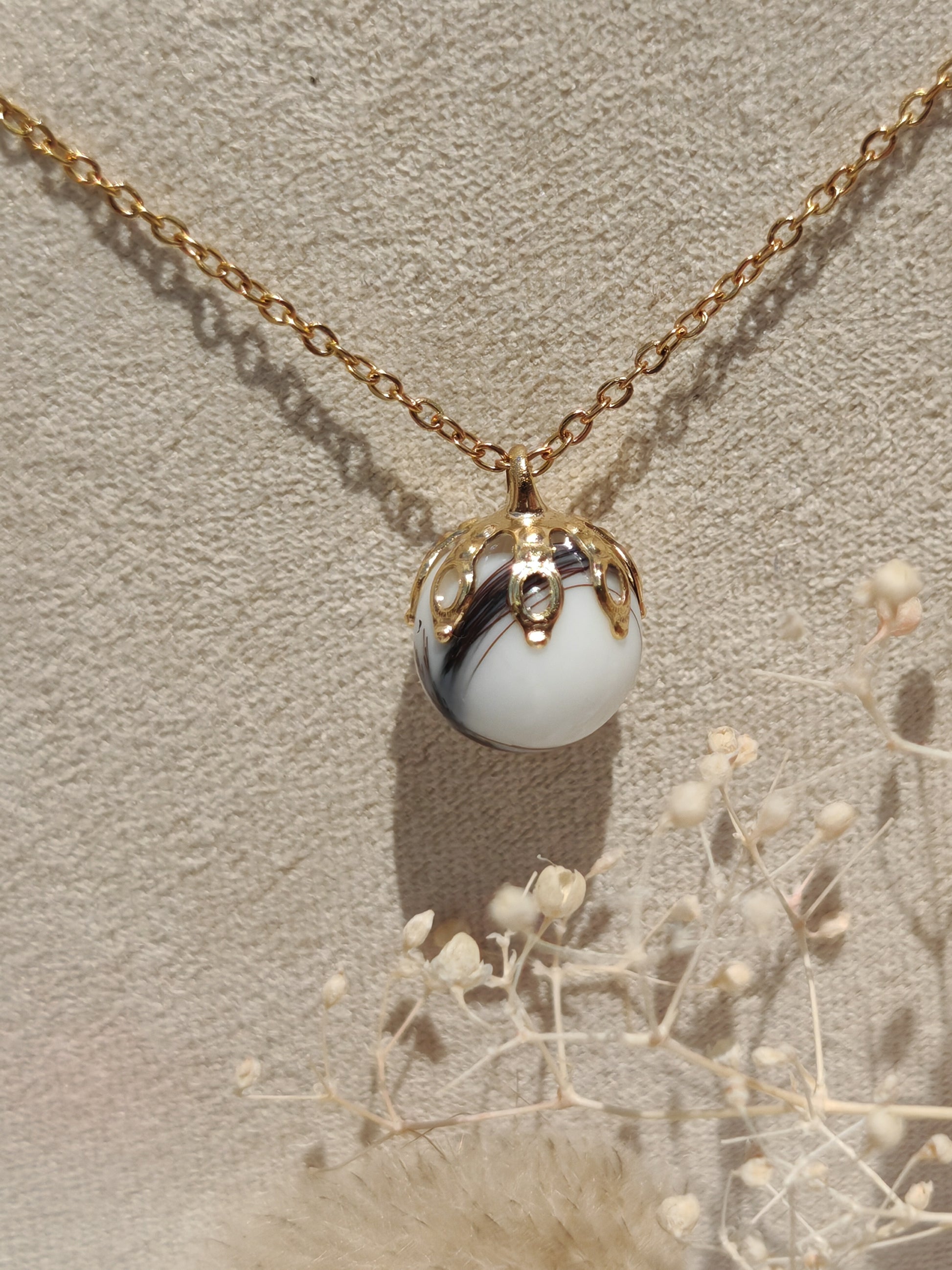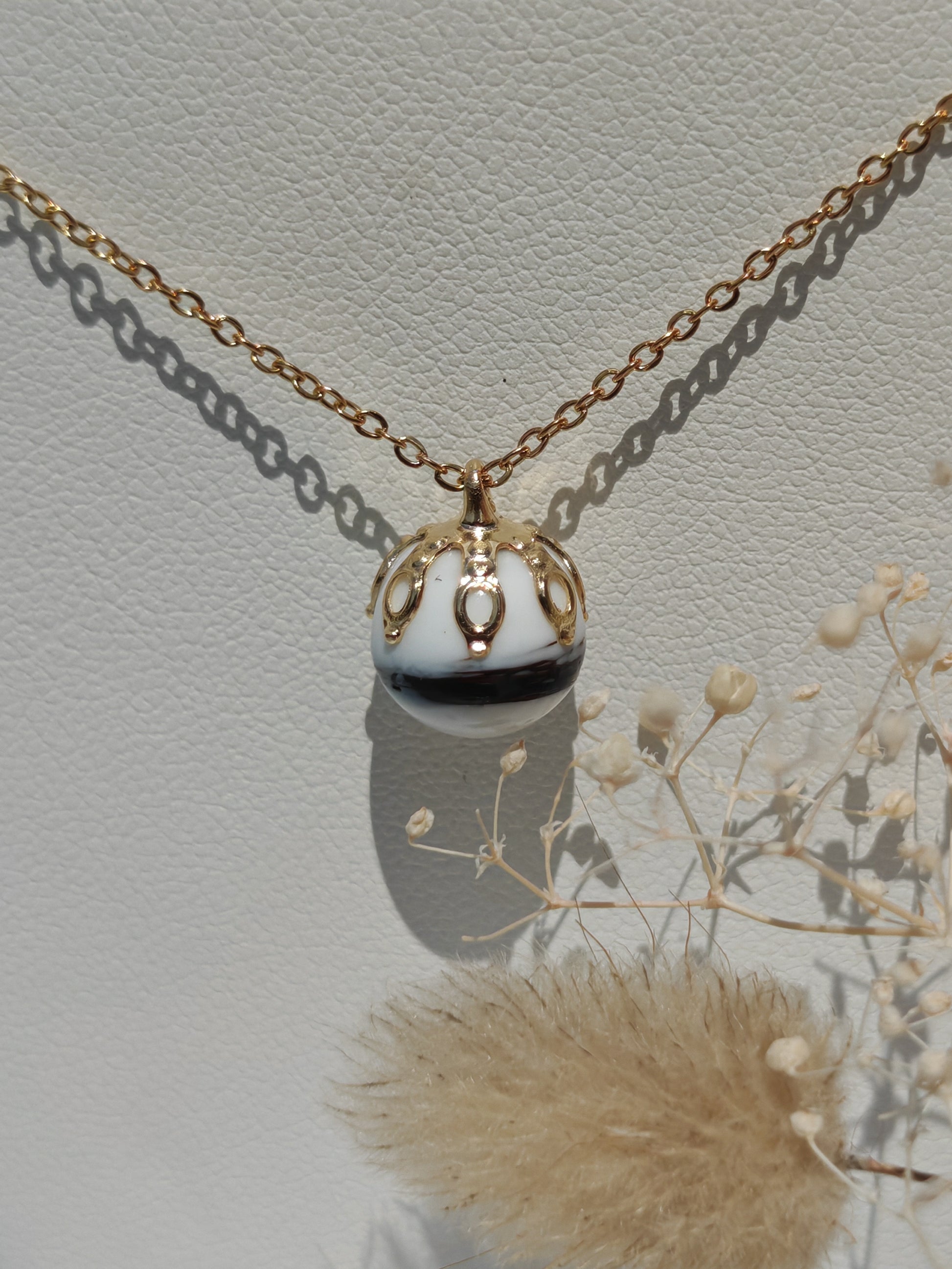 Le bijou perle précieuse est confectionné de mes mains en acier inoxydable et résine UV.